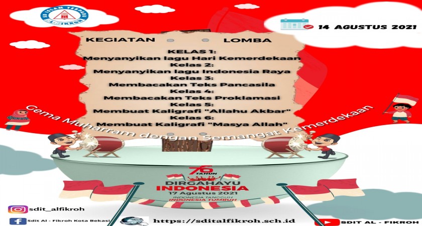 SDIT AL FIKROH menyelenggarakan Perlombaan antar Siswa-Siswi yang diselenggarakan pada tanggal 14 Agustus 2021 dengan Tema acara "Gema Muharram dengan Semangat Kemerdekaan". karena acara tersebut berdekataan antara Tahun Baru Hijriah 1 Muharram 1443 H dengan HUT Kemerdekaan Republik Indonesia yang ke-76, maka tema lomba tersebut berkaitan dengan Tahun Baru Hijriyah dan HUT RI.
